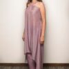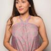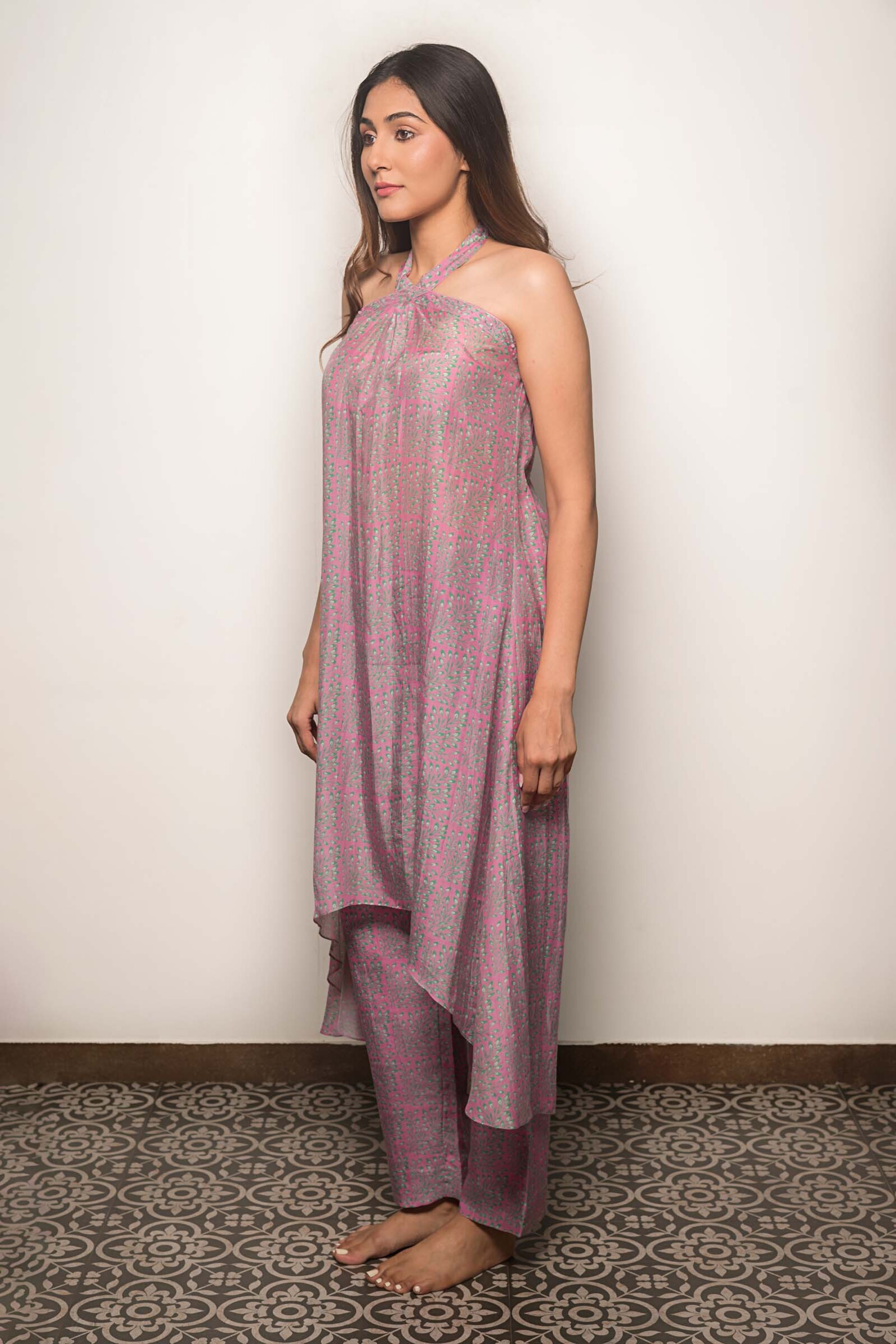 Printed cotton silk co ord set is detailed with sequins and beads on neckline.