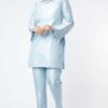 Featuring a light blue short kurta set with bell sleeves and paired with tapered pants in dupion silk. Its embellished with sequins and beads.