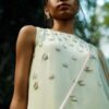 Mint Crepe kurta delicately embroidered with glass beads and sequins, paired with pencil pants and tulle dupatta.