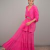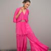 Short kurti with ruching and tassels on sleeves is paired with gypsy palazzo