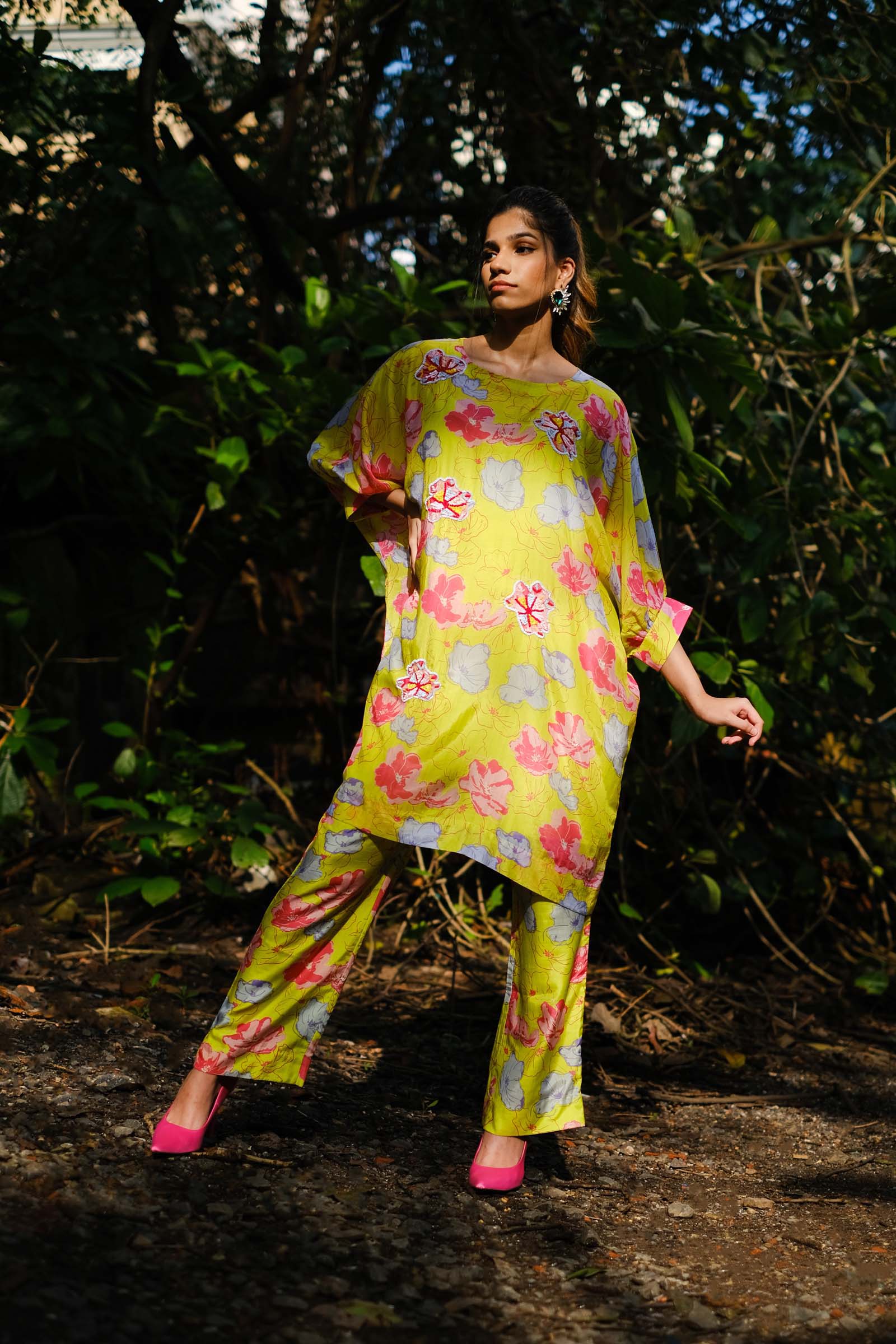 Printed Co-ord set in Silk delicately embellished with sequins and beads
