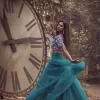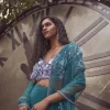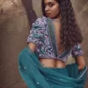 Quetzal green Tulle lehenga with ruched detailing at the waist paired with embroidered blouse in our signature 3D leaves and flowers