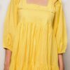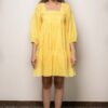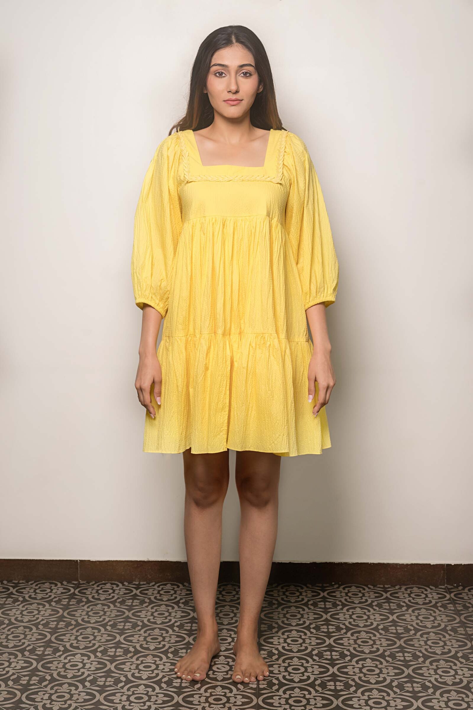 Tiered dress in textured cotton and details on neckline.